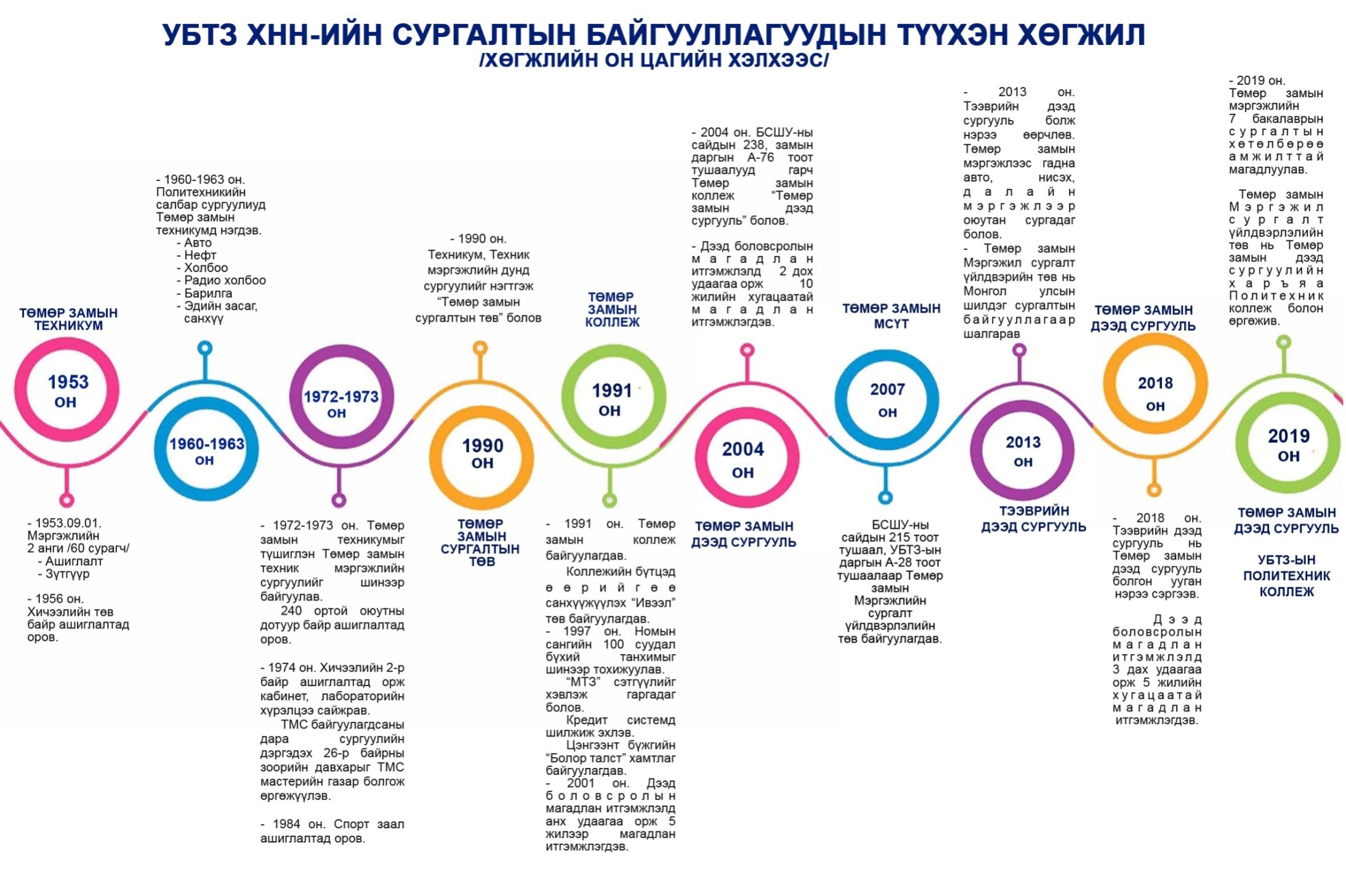 2019 оны 06 дугаар сарын 12-ны УБТЗ-ын даргын А-305 дугаар тушаалаар Төмөр замын Мэргэжил сургалт үйлдвэрлэлийн төв нь ТЗДС-ийн дэргэдэх мэргэжлийн болон техникийн боловсрол эзэмшүүлэх Политехник коллеж болж өргөжсөн.